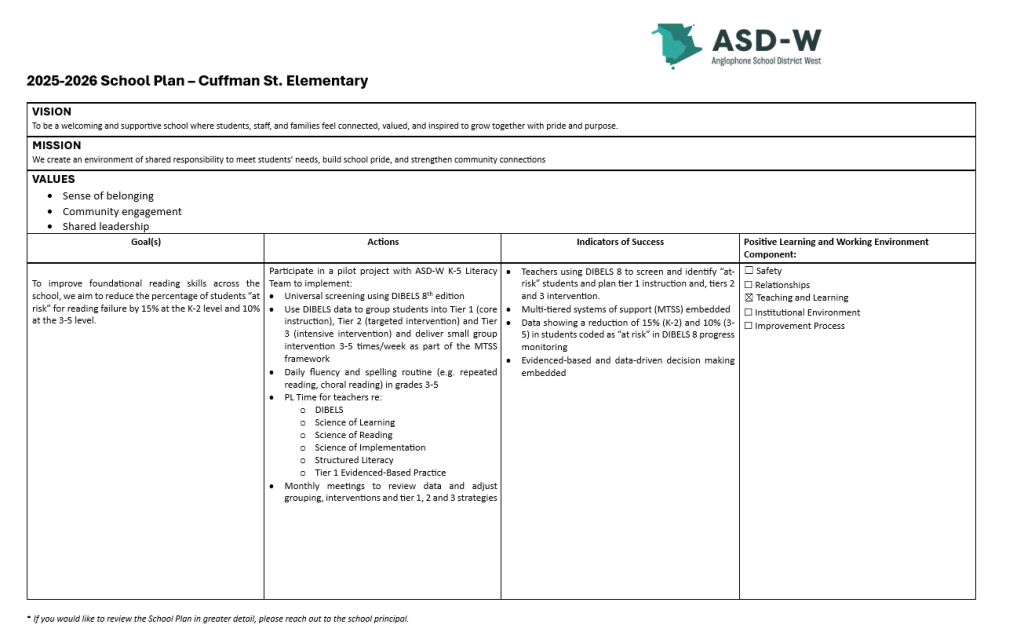 2025 – 2026 School Plan – Cuffman St. Elementary 20 March 2026 Published March 20, 2026 Last modified March 20, 2026, 1:12 pm